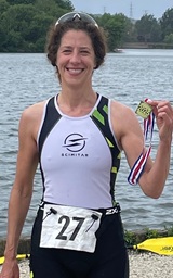 Helen is celebrating after being crowned European Middle Distance Quadrathlon Champion.