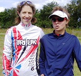 Helen sped to victory at the People‘s Triathlon sprint race at Dearnford Lake in Whitchurch, Shropshire. The event attracted a decent field with professional triathlete Jo Carritt (pictured with Helen) competing in the Olympic distance event. Helen’s swimming has improved this season as shown by the fact that she excited the lake as first female and third overall. She increased her lead over the 20k flat bike course but a male Great Britain age-group athlete overtook her which meant that she was in fourth position overall. She went into the final 5k run with a large lead over the second placed woman, former world sprint triathlon age group silver medallist Emily Dove. She pushed hard and extended her lead on the off-road run around the perimeter of the lake to finish in 1.12.04 -2mins44secs ahead of second placed Emily Dove. Helen posted the fastest women‘s time in all three disciplines. This was an excellent result especially as she finished fourth overall, beating the majority of the male athletes.